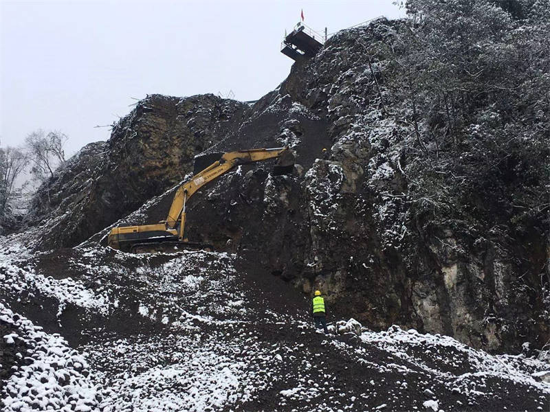 目前,廠區(qū)共8輛車在運(yùn)行施工,主要用施工材料運(yùn)輸,啟動(dòng)3臺(tái)挖機(jī)進(jìn)行礦山防護(hù)網(wǎng)安裝,初步完成安裝礦山防護(hù)網(wǎng)的前期準(zhǔn)備工作。2月15日,舉行復(fù)工儀式,天全縣相關(guān)部門對(duì)項(xiàng)目進(jìn)行復(fù)工資料驗(yàn)收檢查,已具備開(kāi)工條件。丹石公司員工正迎著風(fēng)雪在大山上加緊施工,確保魚泉獅子山礦山開(kāi)采項(xiàng)目能夠盡快完工。