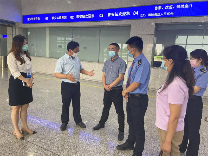 陳武一行分別檢查了火車站出、入站口的人員登記、測(cè)溫、掃碼等防疫措施落實(shí)情況,聽取了相關(guān)情況匯報(bào),對(duì)運(yùn)通公司開展雅安火車站疫情防控工作以來所取得的成效給予了充分肯定。