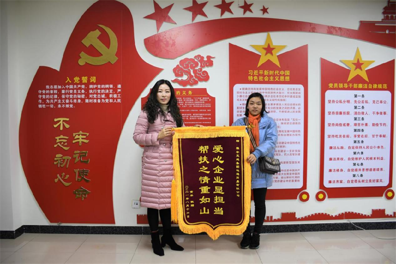 “感謝運(yùn)通公司一直以來對我和家人的關(guān)懷、照顧,讓我感受到了社會的溫暖,讓我們的生活充滿了希望!”1月18日,家住雨城區(qū)雅州大道的黃菲女士在青江街道石馬社區(qū)工作人員的陪伴下來到運(yùn)通公司,將一面印有“愛心企業(yè)顯擔(dān)當(dāng) 幫扶之情重如山”字樣的錦旗送到運(yùn)通公司。這是運(yùn)通公司2022年收到的第一份特殊“禮物”。
