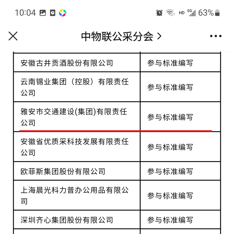 全國(guó)唯一 雅安市交通(建設(shè))集團(tuán)有限公司作為地方國(guó)企參與《國(guó)有企業(yè)采購(gòu) 操作規(guī)范》團(tuán)體標(biāo)準(zhǔn)編寫(xiě)