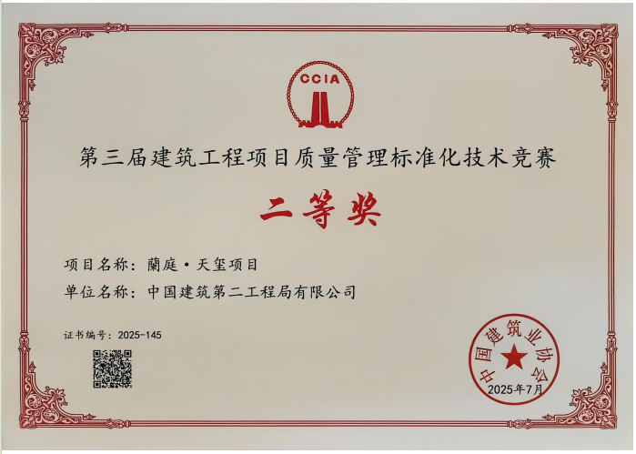 近日,交建開發(fā)公司旗下“蘭庭・天璽”項(xiàng)目在中國建筑業(yè)協(xié)會(huì)組織的“第三屆建筑工程項(xiàng)目質(zhì)量管理標(biāo)準(zhǔn)化技術(shù)競(jìng)賽”中榮獲二等獎(jiǎng)。此次獲獎(jiǎng),標(biāo)志著“蘭庭・天璽”項(xiàng)目的質(zhì)量管理體系與工程實(shí)體質(zhì)量獲得了行業(yè)權(quán)威認(rèn)可,為項(xiàng)目后續(xù)創(chuàng)建更高層次的品質(zhì)獎(jiǎng)項(xiàng)積累了寶貴經(jīng)驗(yàn)。