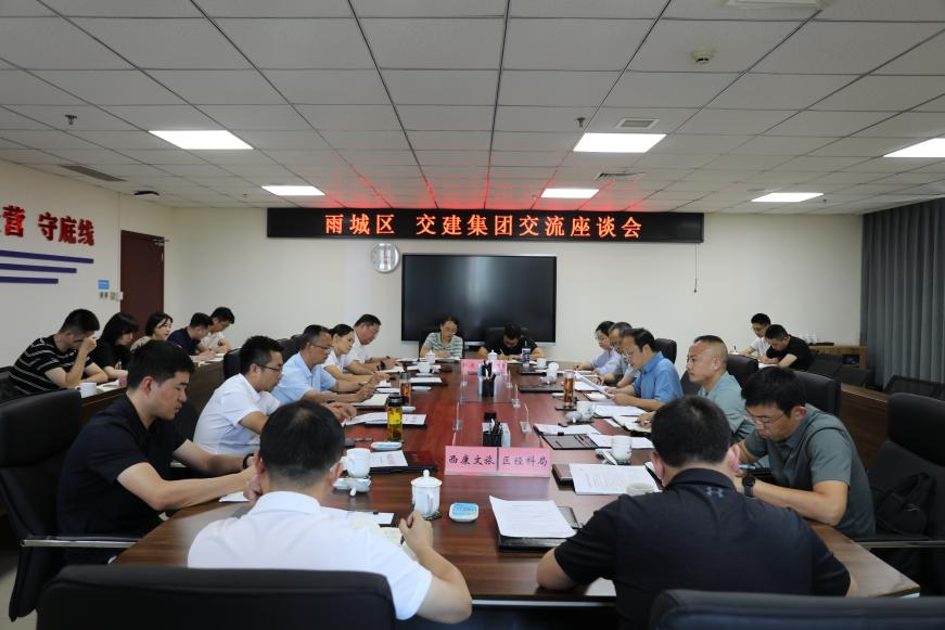 8月15日,雨城區(qū)區(qū)委常委、常務(wù)副區(qū)長白濤,區(qū)政府黨組成員、副區(qū)長彭曉東攜區(qū)發(fā)改局、自規(guī)局、財政局等多部門負責人主動赴交建集團開展座談交流,以“上門服務(wù)”模式為企業(yè)發(fā)展排憂解難。交建集團黨委副書記、總經(jīng)理趙飛勇主持會議,雙方圍繞交旅融合、綜合能源站建設(shè)、集中采購優(yōu)化及建材合作等核心議題深入磋商,就前期合作項目推進情況充分交換意見,并就下一步深化合作達成系列共識。