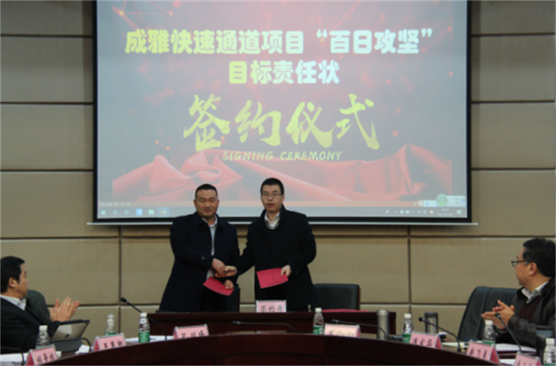 會上,項(xiàng)目公司介紹了項(xiàng)目建設(shè)情況;市交通運(yùn)輸局安排布置了“百日攻堅(jiān)”活動;中建三局、六局、參建單位分別發(fā)言,建設(shè)單位分別與各標(biāo)段簽訂“百日攻堅(jiān)”責(zé)任狀,會議在嚴(yán)肅又緊張的氛圍下進(jìn)行。