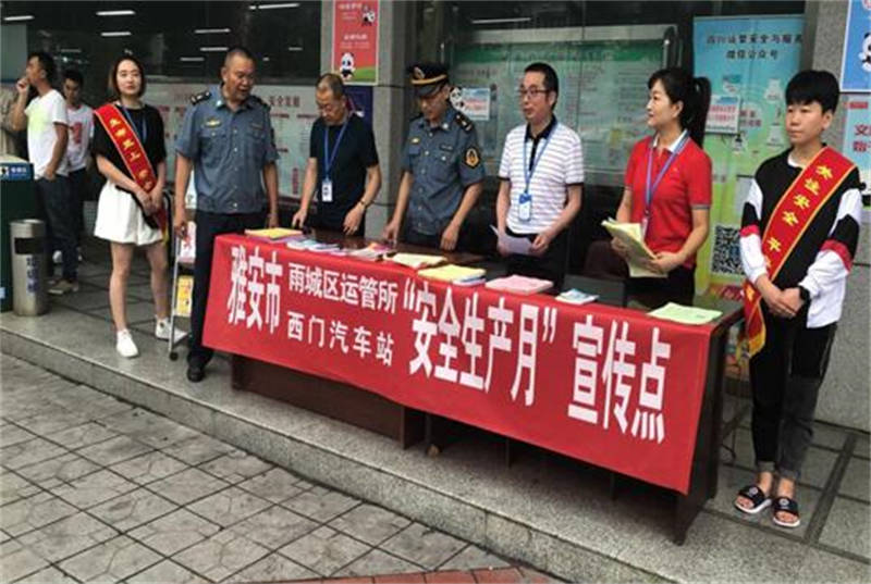 6月14日,蜀通公司雅安西門(mén)汽車(chē)站、雅安汽車(chē)站分別在站前廣場(chǎng)舉行了“防風(fēng)險(xiǎn)、除隱患,遏事故”為主題的安全宣傳咨詢(xún)活動(dòng)。西門(mén)車(chē)站精心準(zhǔn)備了宣傳片12個(gè)、專(zhuān)欄2個(gè)、海報(bào)7幅、LED橫幅12個(gè)等安全宣傳資料,現(xiàn)場(chǎng)發(fā)放各種安全宣傳資料1000余份;雅安汽車(chē)客運(yùn)站設(shè)置安全專(zhuān)欄9個(gè)、LED標(biāo)語(yǔ)12幅、宣傳視頻10個(gè)、發(fā)放宣傳資料800余份。宣傳內(nèi)容涵蓋了安全生產(chǎn)法律法規(guī)、道路旅客運(yùn)輸安全知識(shí)、公民預(yù)防恐怖活動(dòng)行為指引、客運(yùn)行業(yè)打非治違、客運(yùn)班線實(shí)名制售檢票、安全帶的重要性、乘車(chē)安全常識(shí)、公共場(chǎng)所如何預(yù)防踩踏事故等安全知識(shí)和技能以及“三不進(jìn)站六不出站”管理規(guī)定及蜀通官方微信購(gòu)票平臺(tái)等。