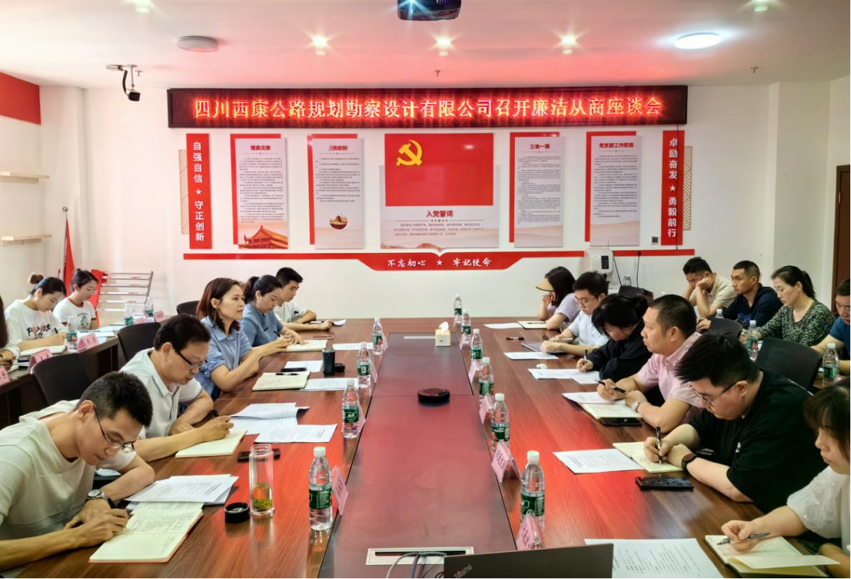為弘揚清風正氣,共建“親清”統(tǒng)一的企商關(guān)系,共筑廉潔自律反腐防線,營造更加優(yōu)良的發(fā)展環(huán)境。5月24日,雅安交建集團西康設(shè)計公司召開廉潔從商座談會,22家合作商、供應(yīng)商應(yīng)邀參加,集團黨委委員、副總經(jīng)理丁春出席會議并作重要講話,公司黨支部書記、執(zhí)行董事何銘新主持會議,公司全體中層干部參加會議。