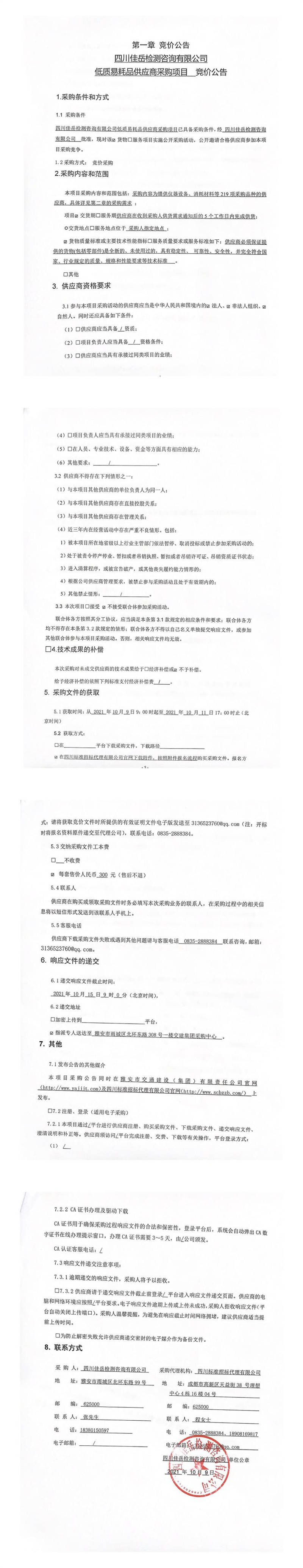 四川佳岳檢測咨詢有限公司低質(zhì)易耗品供應(yīng)商采購項(xiàng)目競價(jià)公告