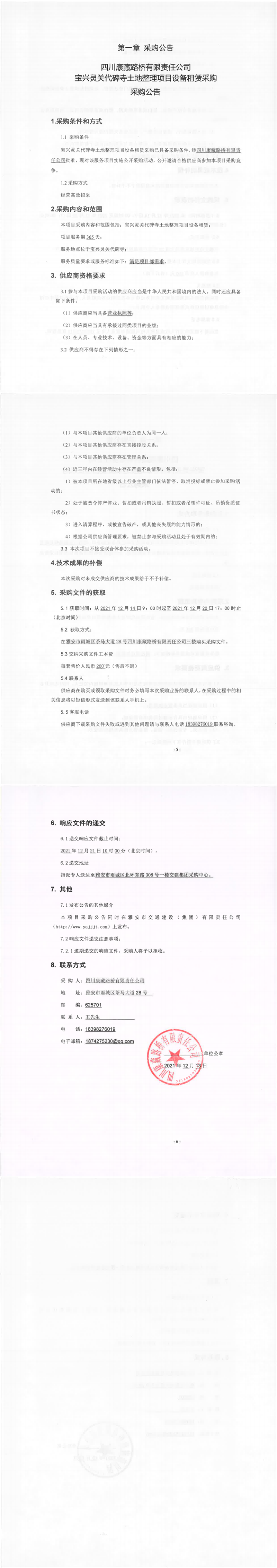 四川康藏路橋有限責任公司寶興靈關(guān)代碑寺土地整理項目設(shè)備租賃采購采購公告