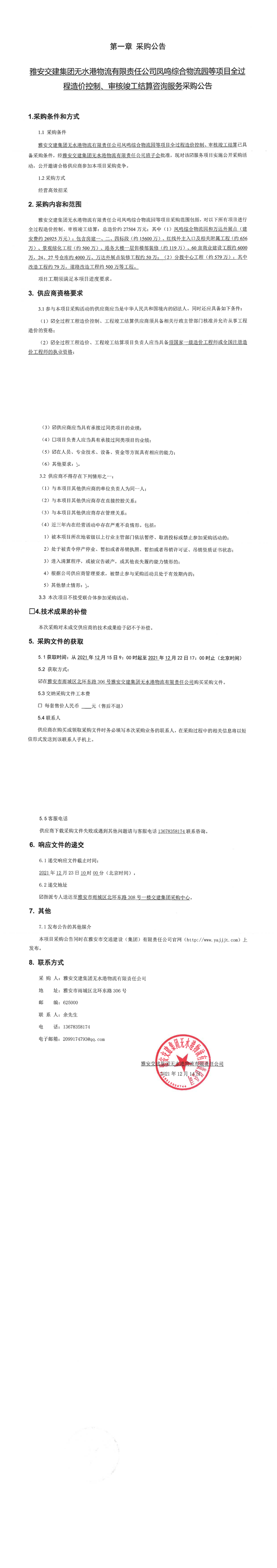 雅安交建集團(tuán)無水港物流有限責(zé)任公司鳳鳴綜合物流等項(xiàng)目全過程造價(jià)控制、審核竣工結(jié)算咨詢服務(wù)采購(gòu)公告