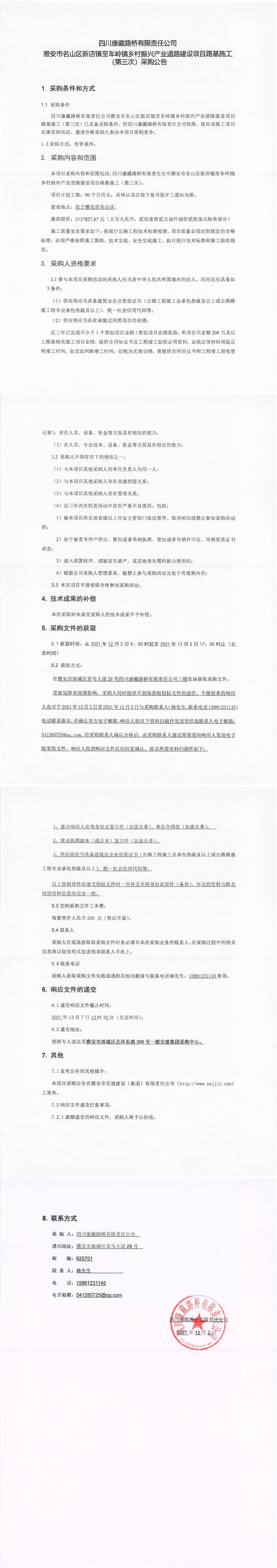 四川康藏路橋有限責任公司雅安市名山區(qū)新店鎮(zhèn)至車嶺鎮(zhèn)鄉(xiāng)村振興產(chǎn)業(yè)道路建設(shè)項目路基施工(第三次)采購公告