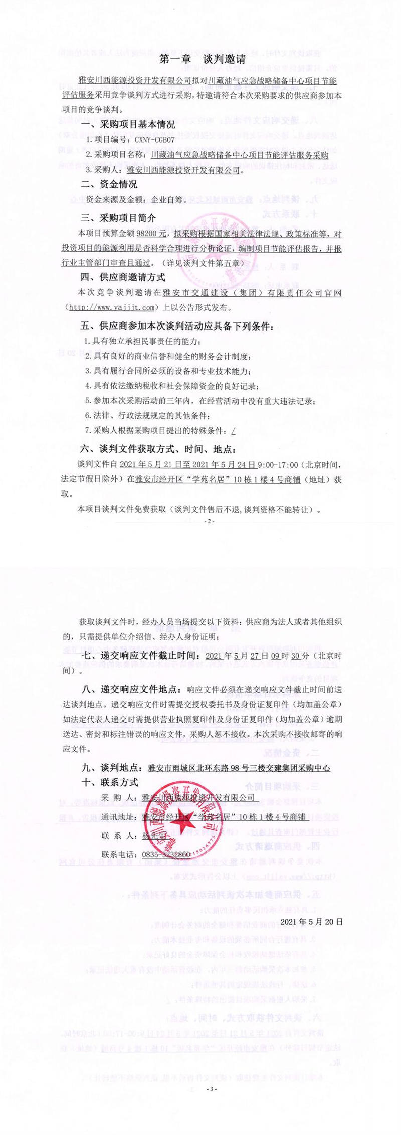 雅安川西能源投資開發(fā)有限公司川藏油氣應(yīng)急戰(zhàn)略儲(chǔ)備中心項(xiàng)目節(jié)能評(píng)估服務(wù)采購(gòu)競(jìng)爭(zhēng)談判公告