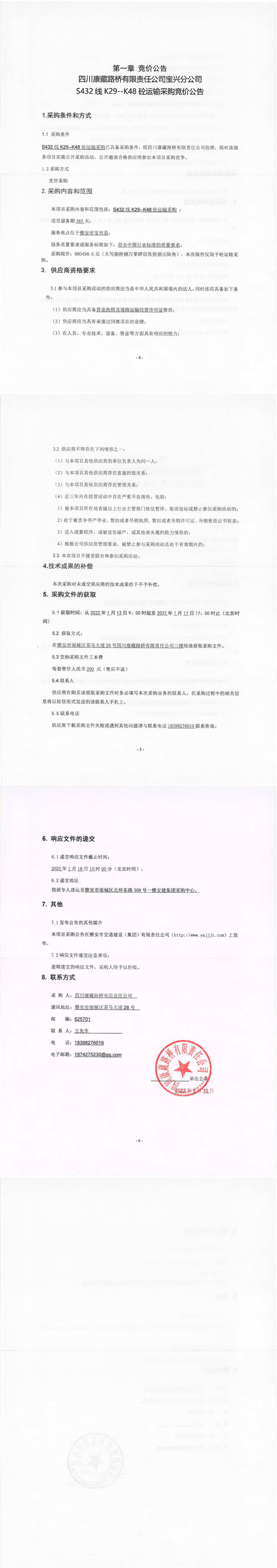 四川康藏路橋有限責(zé)任公司寶興分公司S432線(xiàn)K29-K48砼運(yùn)輸采購(gòu)競(jìng)價(jià)公告