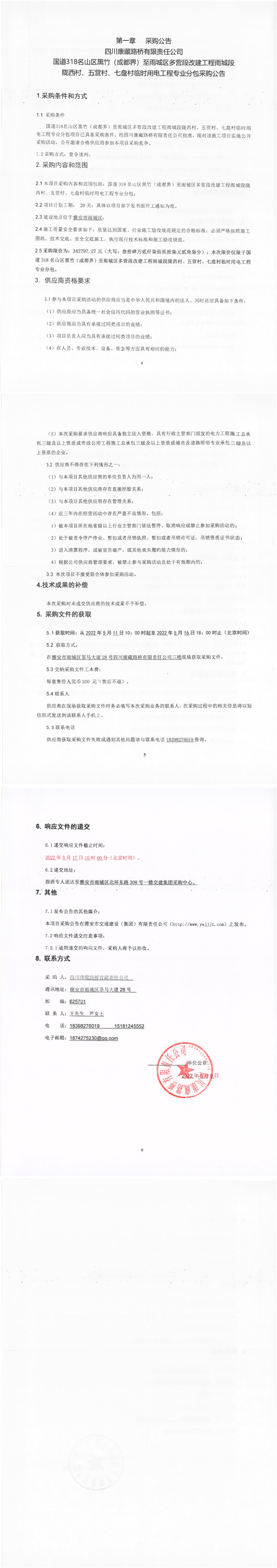 四川康藏路橋有限責(zé)任公司G318線成都界至雨城段新改建項(xiàng)目名山段臨時(shí)用電工程專業(yè)分包采購(gòu)公告