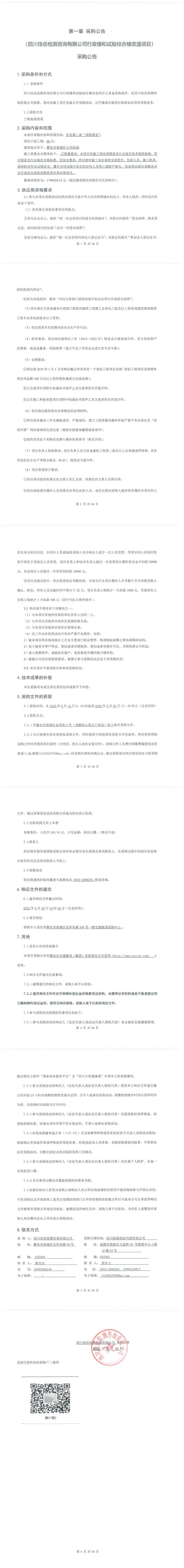 四川佳岳檢測(cè)咨詢有限公司行政樓和試驗(yàn)綜合樓改造項(xiàng)目采購(gòu)公告