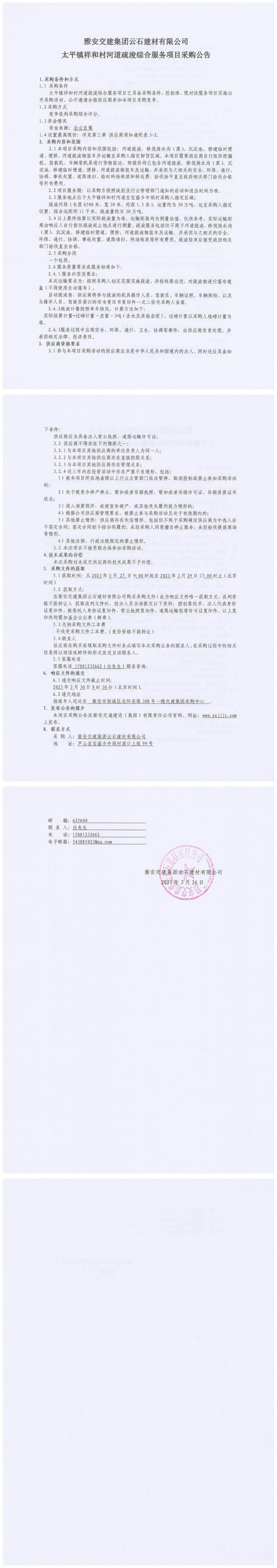雅安交建集團(tuán)云石建材有限公司太平鎮(zhèn)祥和村河道疏浚綜合服務(wù)項目采購公告