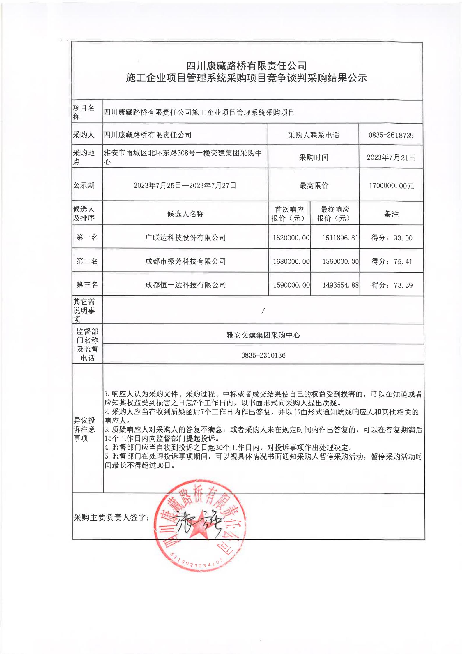 四川康藏路橋有限責(zé)任公司施工企業(yè)項(xiàng)目管理系統(tǒng)采購(gòu)項(xiàng)目競(jìng)爭(zhēng)談判采購(gòu)結(jié)果公示