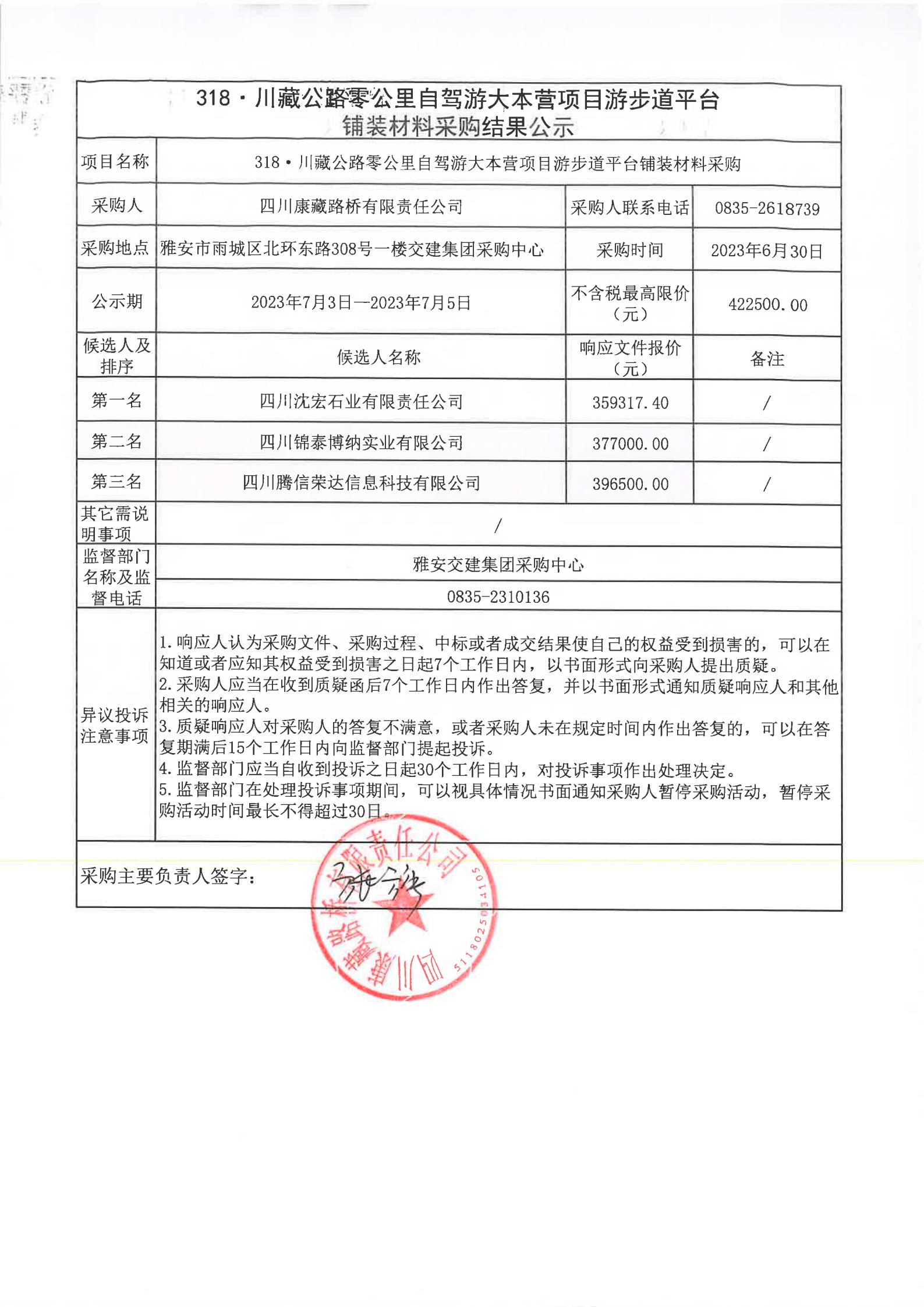 四川康藏路橋有限責(zé)任公司318·川藏公路零公里自駕游大本營(yíng)項(xiàng)目游步道平臺(tái)鋪裝材料采購(gòu)結(jié)果公示