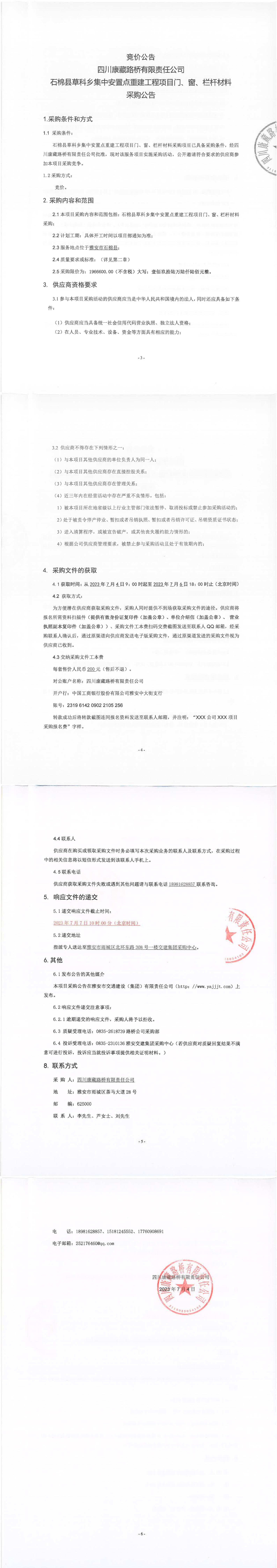 四川康藏路橋有限責(zé)任公司石棉縣草科鄉(xiāng)集中安置點重建工程項目門、窗、欄桿材料采購公告