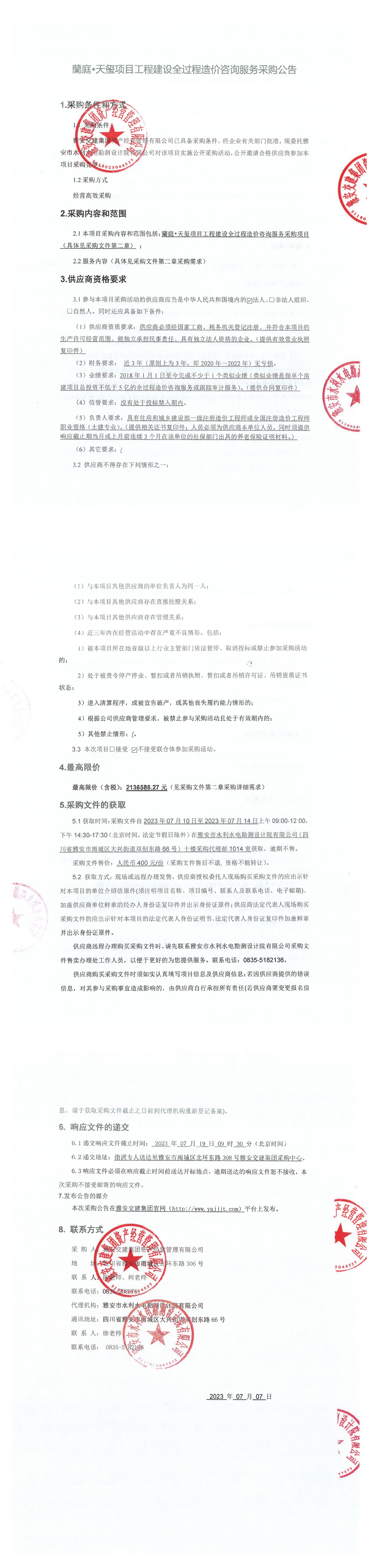 雅安交建集團(tuán)資產(chǎn)經(jīng)營管理有限公司蘭庭•天璽項(xiàng)目工程建設(shè)全過程造價(jià)咨詢服務(wù)采購公告