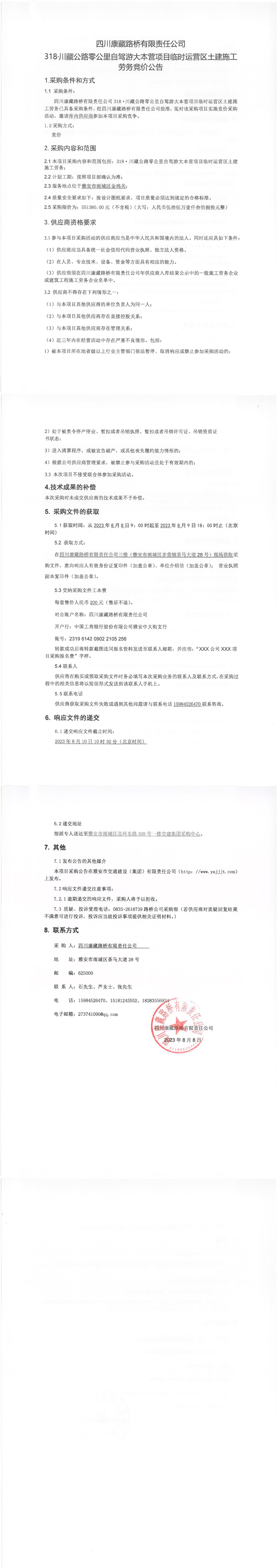 四川康藏路橋有限責(zé)任公司318·川藏公路零公里自駕游大本營項(xiàng)目臨時(shí)運(yùn)營區(qū)土建施工勞務(wù)競價(jià)公告