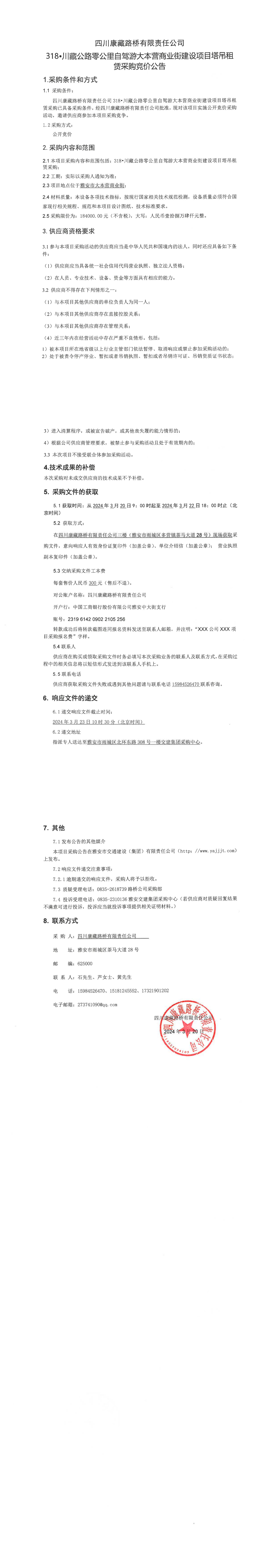 四川康藏路橋有限責(zé)任公司318·川藏公路零公里自駕游大本營商業(yè)街建設(shè)項(xiàng)目塔吊租賃采購競(jìng)價(jià)公告
