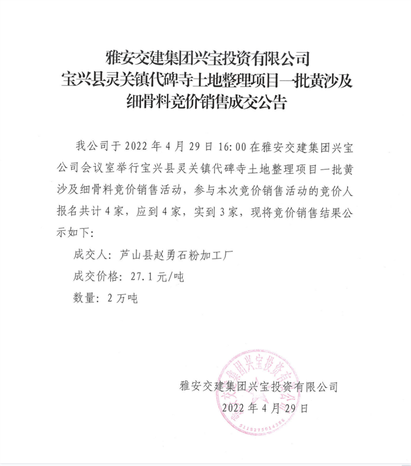 興寶公司競價銷售成交公告