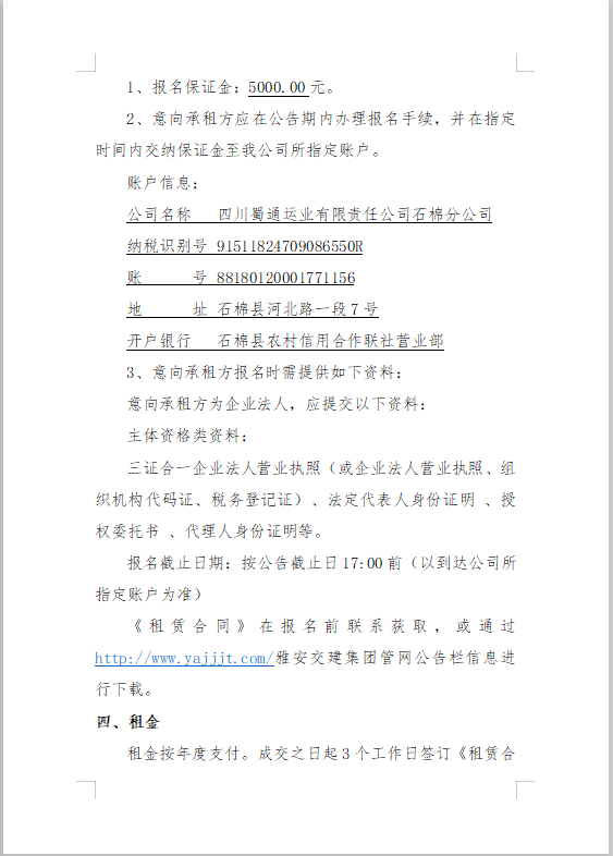 蜀通公司招租公告附件