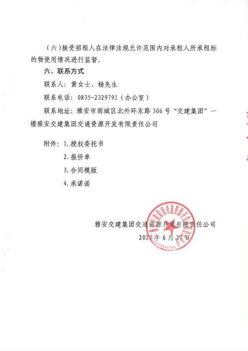 雅安交建集團交通資源開發(fā)有限責(zé)任公司雨名快速通道名山服務(wù)區(qū)1號樓招租公告附件