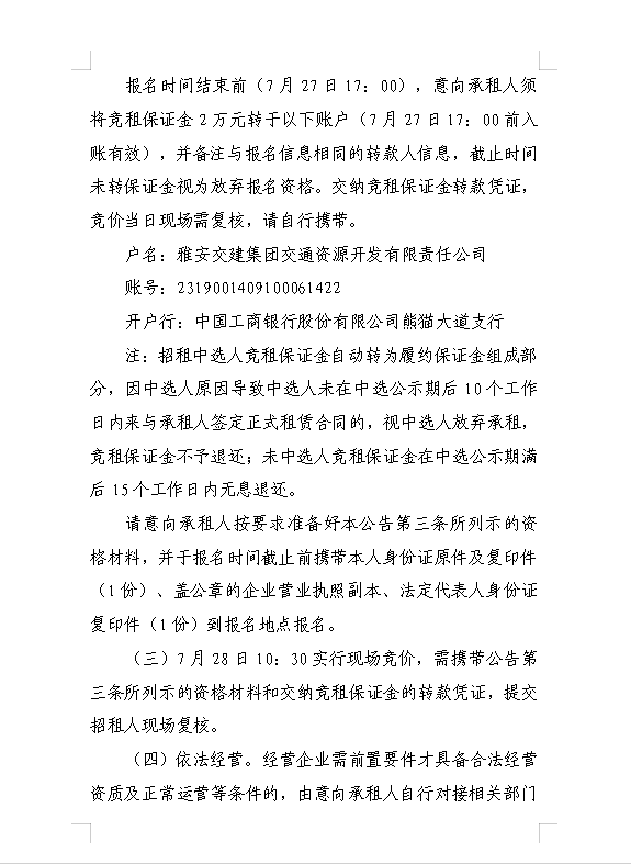 雅安交建集團(tuán)交通資源開發(fā)有限責(zé)任公司雨名快速通道名山服務(wù)區(qū)場地(游樂類項目)招租公告