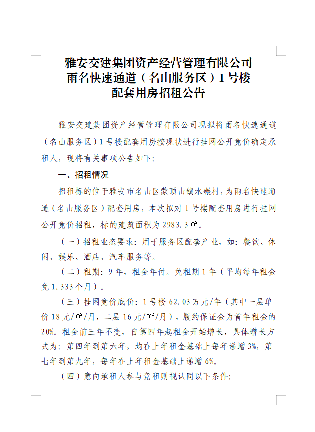 ÑŰ²½»½¨¼¯ˆFÙY®a(ch¨£n)½›(j¨©ng) I¹ÜÀíÓÐÏÞ¹«Ë¾ÓêÃû¿ìËÙͨµÀ£¨Ãûɽ·þ„Õ(w¨´)…^(q¨±)£©1Ì–˜ÇÅäÌ×Ó÷¿ÕÐ×⹫¸æ