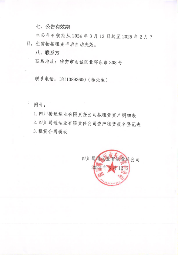ËÄ´¨Êñͨß\˜I(y¨¨)ÓÐÏÞØŸ(z¨¦)Èι«Ë¾êP(gu¨¡n)ÓÚŒ¦Íâ×âÙU²¿·ÖéTÃæ¡¢Þk¹«ÊÒÙY®a(ch¨£n)µÄ¹«¸æ¸½¼þ