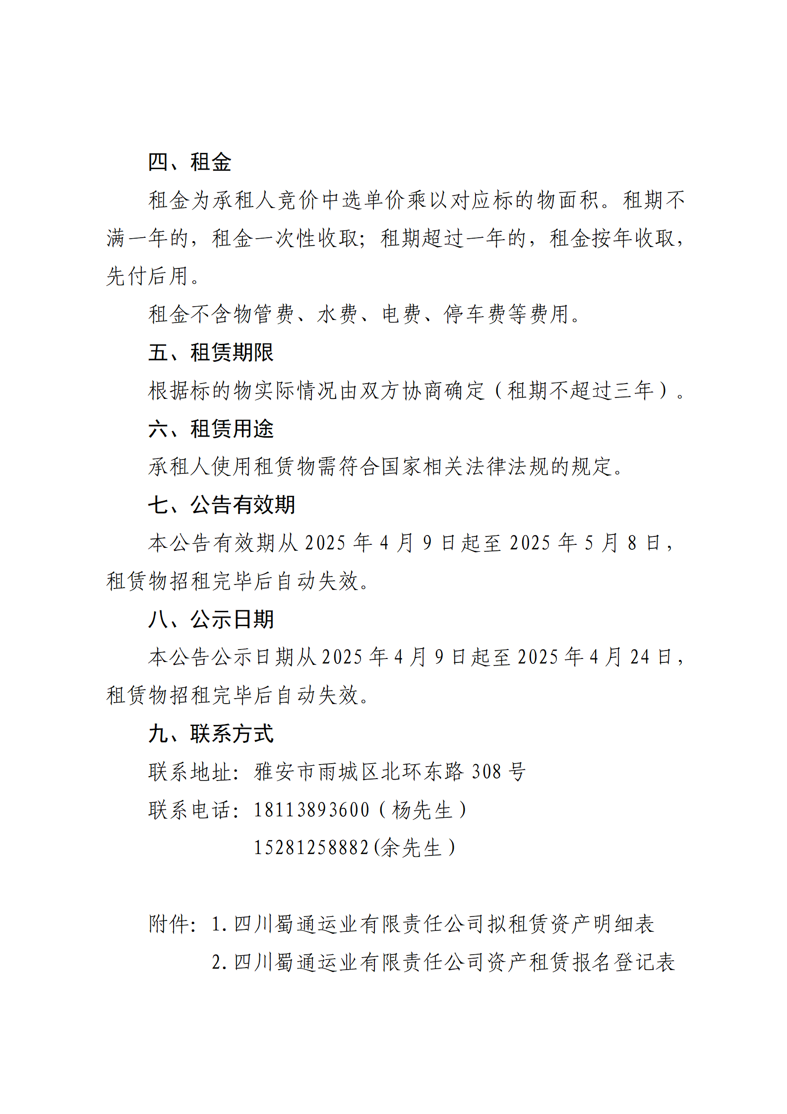 四川蜀通運(yùn)業(yè)有限責(zé)任公司 關(guān)于康藏路261號附22號、平安路30號兩處門面、漢源汽車站二樓閑置房屋進(jìn)行掛網(wǎng)招租的公告