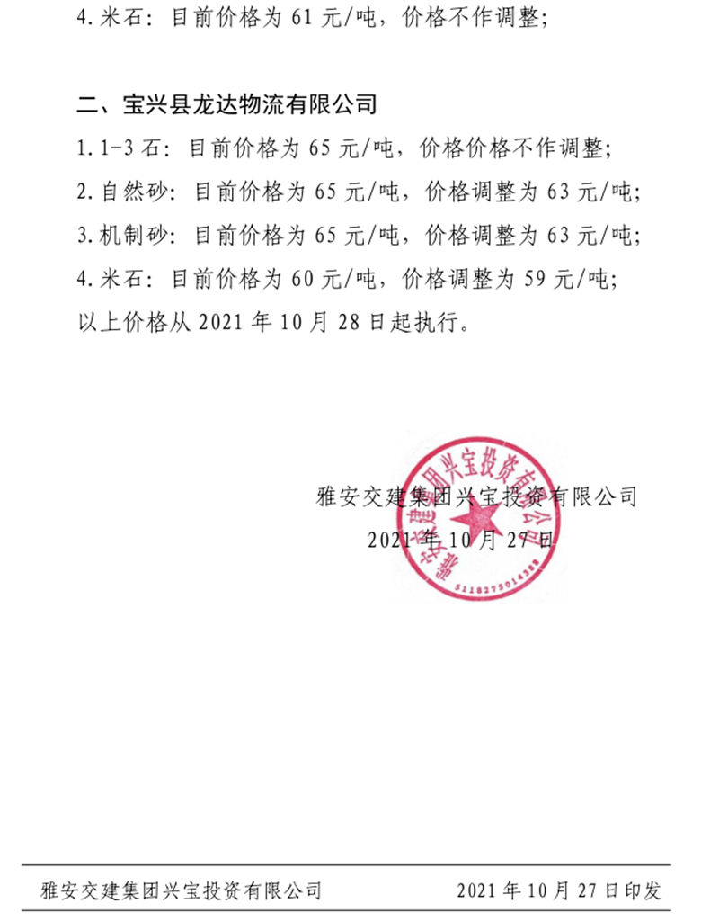 ÑŰ²½»½¨¼¯ˆF(tu¨¢n)ÅdŒš¹«Ë¾êP(gu¨¡n)ÓÚÕ{(di¨¤o)Õû³ÉÆ·ÁÏäNÊÛƒr(ji¨¤)¸ñµÄ֪ͨ£¨2021.10.28£©