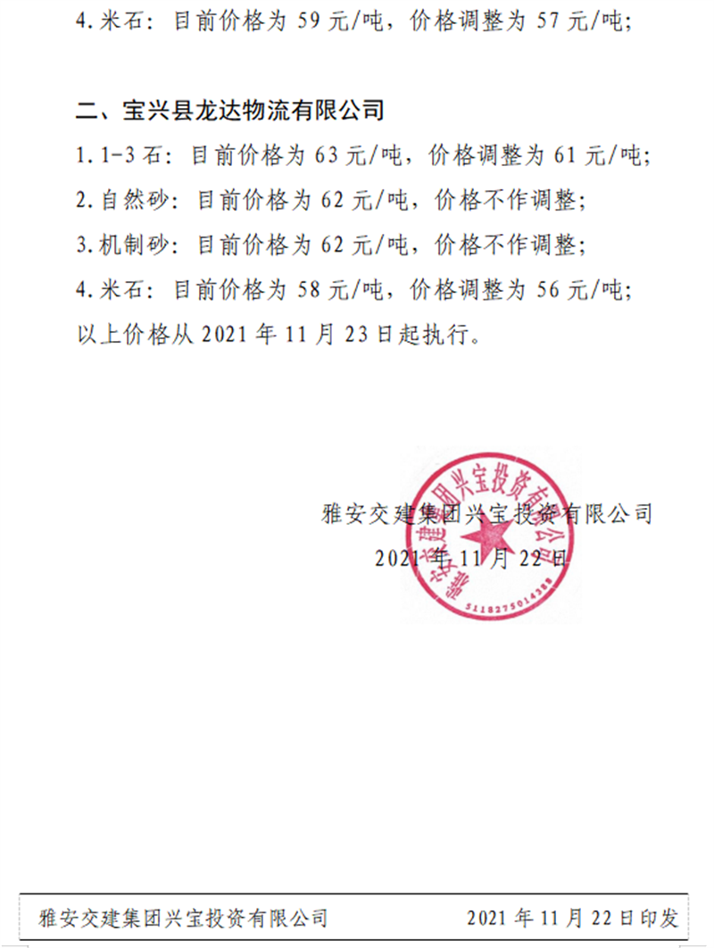 ÑŰ²½»½¨¼¯ˆF(tu¨¢n)ÅdŒš¹«Ë¾êP(gu¨¡n)ÓÚÕ{(di¨¤o)Õû³ÉÆ·ÁÏäNÊÛƒr(ji¨¤)¸ñµÄ֪ͨ£¨2021.11.23£©