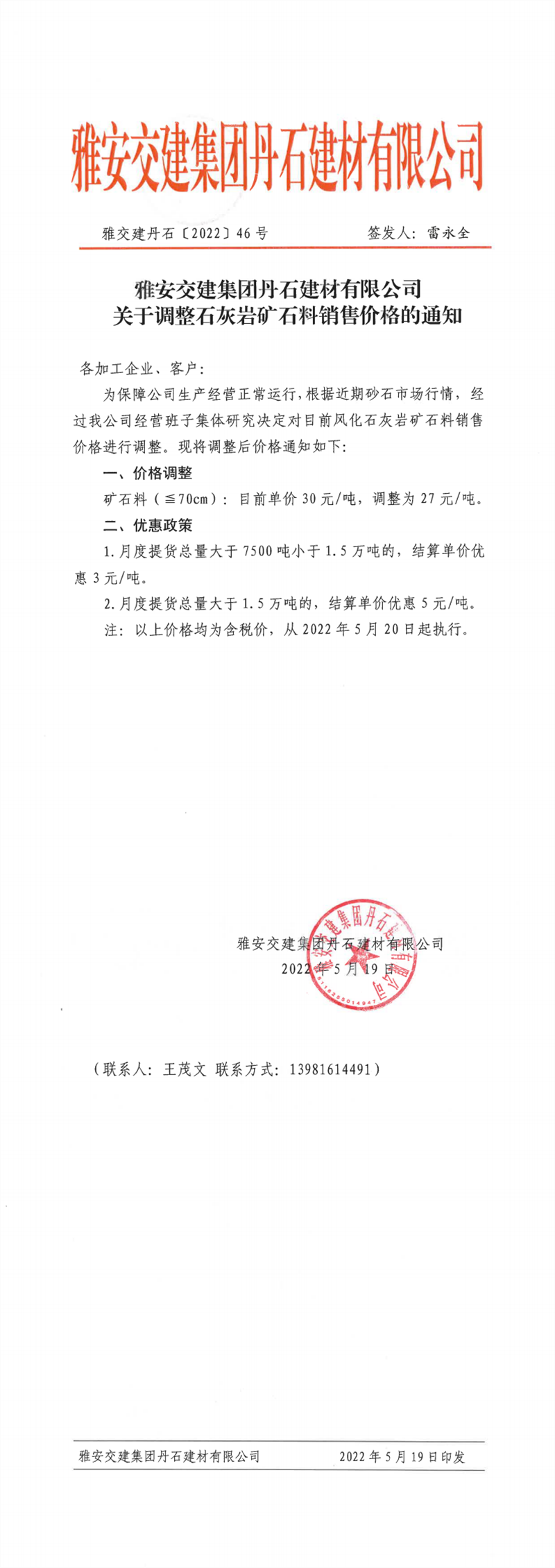 ÑŰ²½»½¨¼¯ˆF(tu¨¢n)ÅdŒš¹«Ë¾êP(gu¨¡n)ÓÚÕ{(di¨¤o)Õûɰʯ³ÉÆ·ÁÏäNÊÛƒr¸ñµÄ֪ͨ-2022-5-19